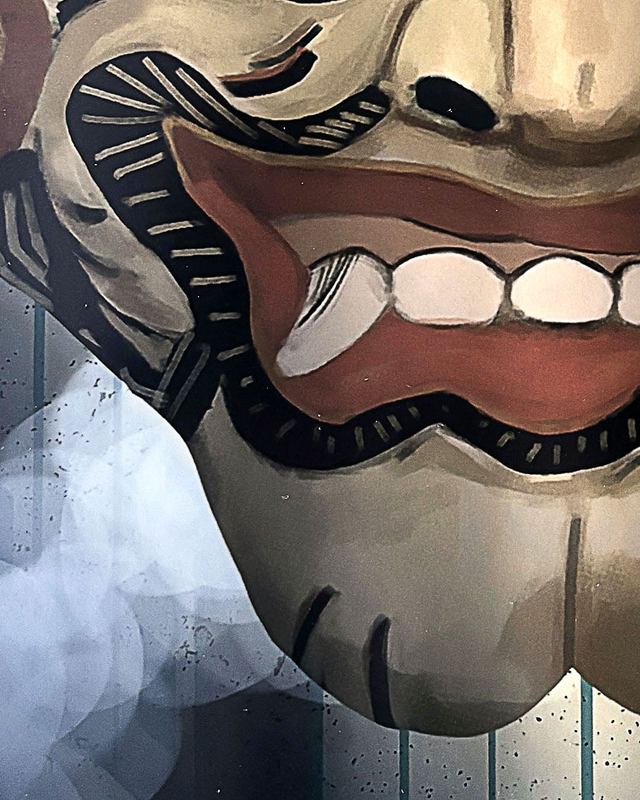 Réalisée en technique mixte — peinture puis digital painting — cette œuvre joue sur les contrastes, les textures et la profondeur. Le rendu dramatique crée une atmosphère puissante, presque cinématographique, capable de transformer immédiatement un intérieur.