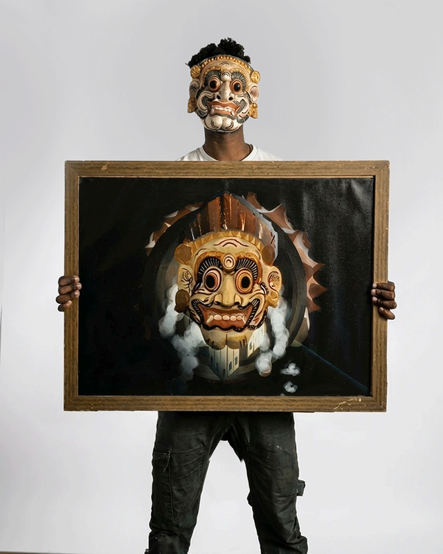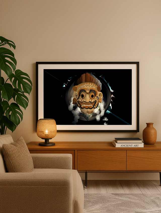 Affiche “Masque Balinais” – Une scène mystique capturée entre ombre et lumière