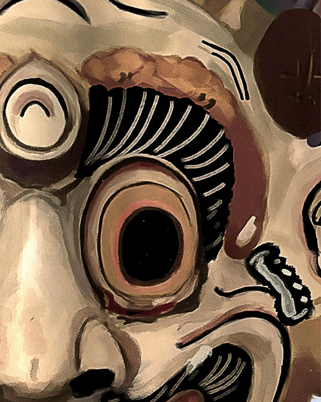 Cette illustration représente un masque balinais traditionnel, symbole fort de spiritualité et de théâtre sacré.